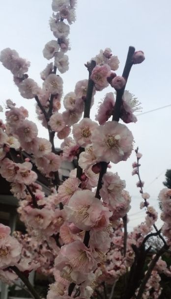 ぼ満開に成って、散り始めた庭の梅です。